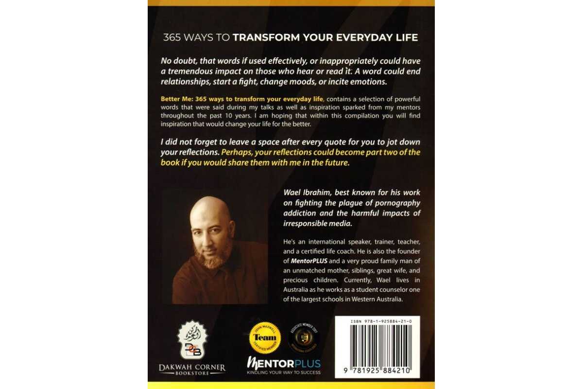 Better Me: 365 ways to transform your everyday life, contains a selection of powerful words that were said during my talks as well as inspiration sparked from my mentors throughout the past 10 years. I am hoping that within this compilation you will find inspiration that will change your life for the better.